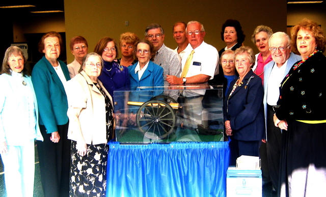 James Woods officers and members are seen here presenting a check to the Wood County Historical Society in support of purchasing an authentic reproduction cannon for Fort Boreman Hill Park in Parkersburg.