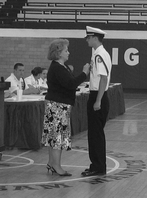 Past Regent Barbara Smith presenting outstanding ROTC Medal to Parkersburg High School ROTC member, May 2007
