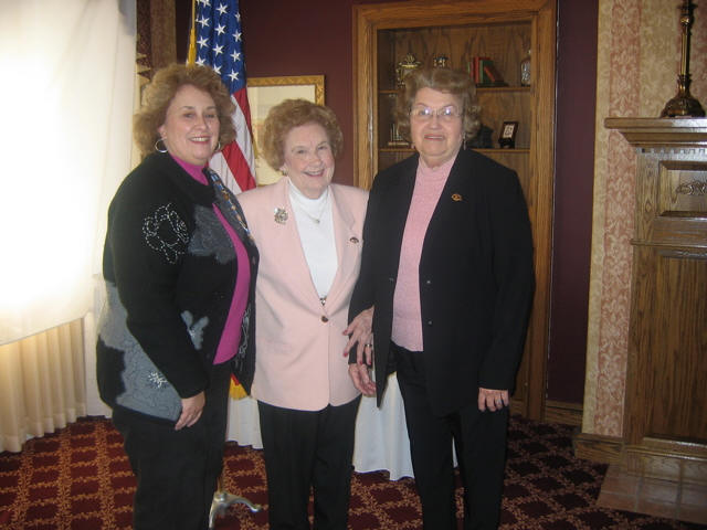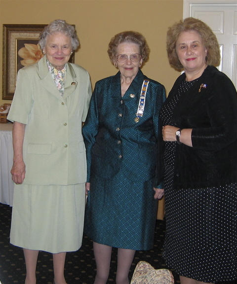 Past Regent Barbara Smith presenting members Helen Barnett and JoAnn Ballengee with 50 year and 25 year pins